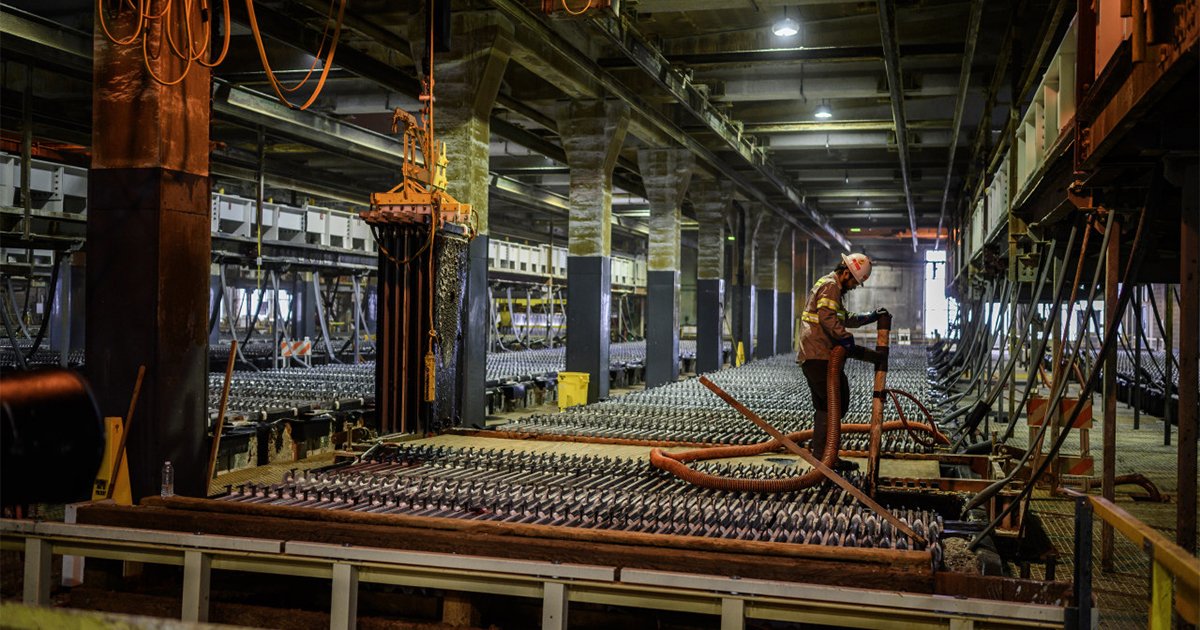高麗亜鉛が取得するテネシー州クラークスビルの工場。亜鉛浸出プロセスでの再利用に向けてマンガンを回収するセル洗浄オペレーター(2023年)PHOTO: WILLIAM DESHAZER FOR WSJ
