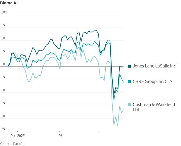 投資家は不動産業界でもAIによって労働集約的なビジネスモデルが空洞化し、専門知識を高い価格で提供する企業のマージンが圧縮されないかどうか見極めようとしている。