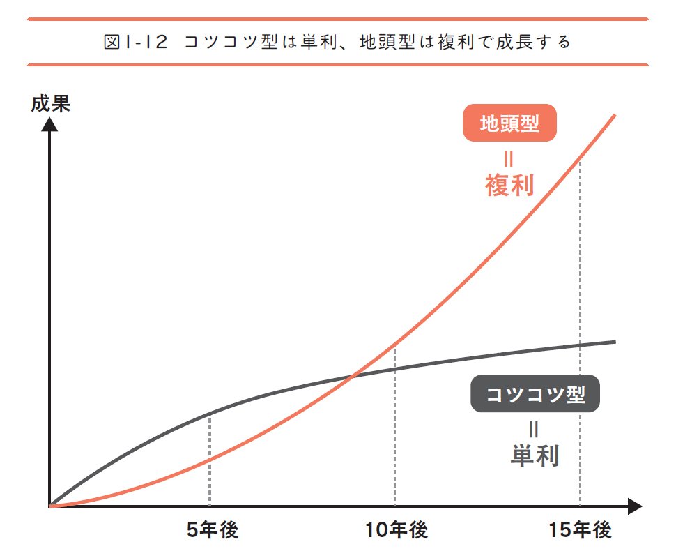 コツコツ型は単利、地頭型は複利で成長していく――そんなイメージです。