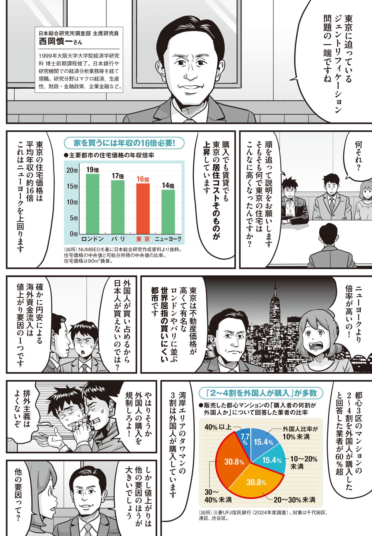 マンション価格の高騰が話題だ。今や東京23区のマンション平均価格は1億4000万円以上。都心部では約2億円に達し、普通のサラリーマンには到底手の届かない水準になっている。今後、都市部に住むのが富裕層ばかりになると、どのような事態が引き起こされるのか。また、日本より早くこうした事態に見舞われた欧米では、どんな対策が行われているのか、マンガで解説する!(作画:西アズナブル)