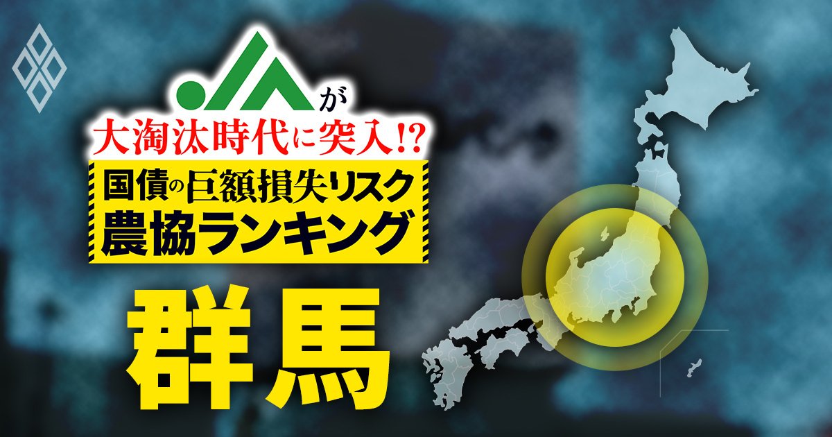 全国に約500組織ある農協の有価証券の含み損が合計6000億円超に膨らんでいることが分かった。日本の長期金利の上昇によって時価が下落した債券の“損切り”に追い込まれ、赤字に転落する農協が増え始めているのだ。群馬県には、債券運用の失敗によって有価証券の含み損が合計8億円超に膨らんでいる農協が三つあり、含み損リスクが顕在化することで財務が毀損しかねない“危険水域”にある農協が二つあることが判明した。長期連載『儲かる農業 JA・豪農・アグリビジネス大激変』内の特集『JAが大淘汰時代に突入!? 国債の「巨額損失リスク」農協ランキング』の本稿では、債券の売却損を計上することで、巨額損失に陥る可能性が高まっている群馬県の農協の実態を明らかにする。(ダイヤモンド編集部副編集長 千本木啓文、データ分析 小海敬義)