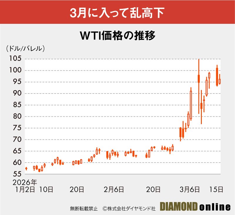 2月28日に始まった米国とイスラエルによるイランへの軍事行動をきっかけに、原油価格は急騰しました。その後は停戦への期待が強まると下がり、情勢悪化への警戒が高まると上がるなど、荒い値動きが続いています。