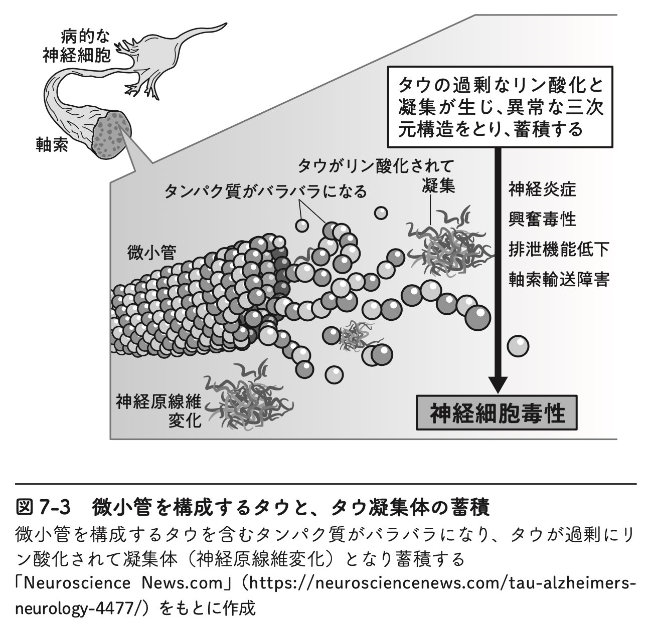 タウは、主に神経細胞の微小管に集まるタンパク質の一種です(図7-3)。