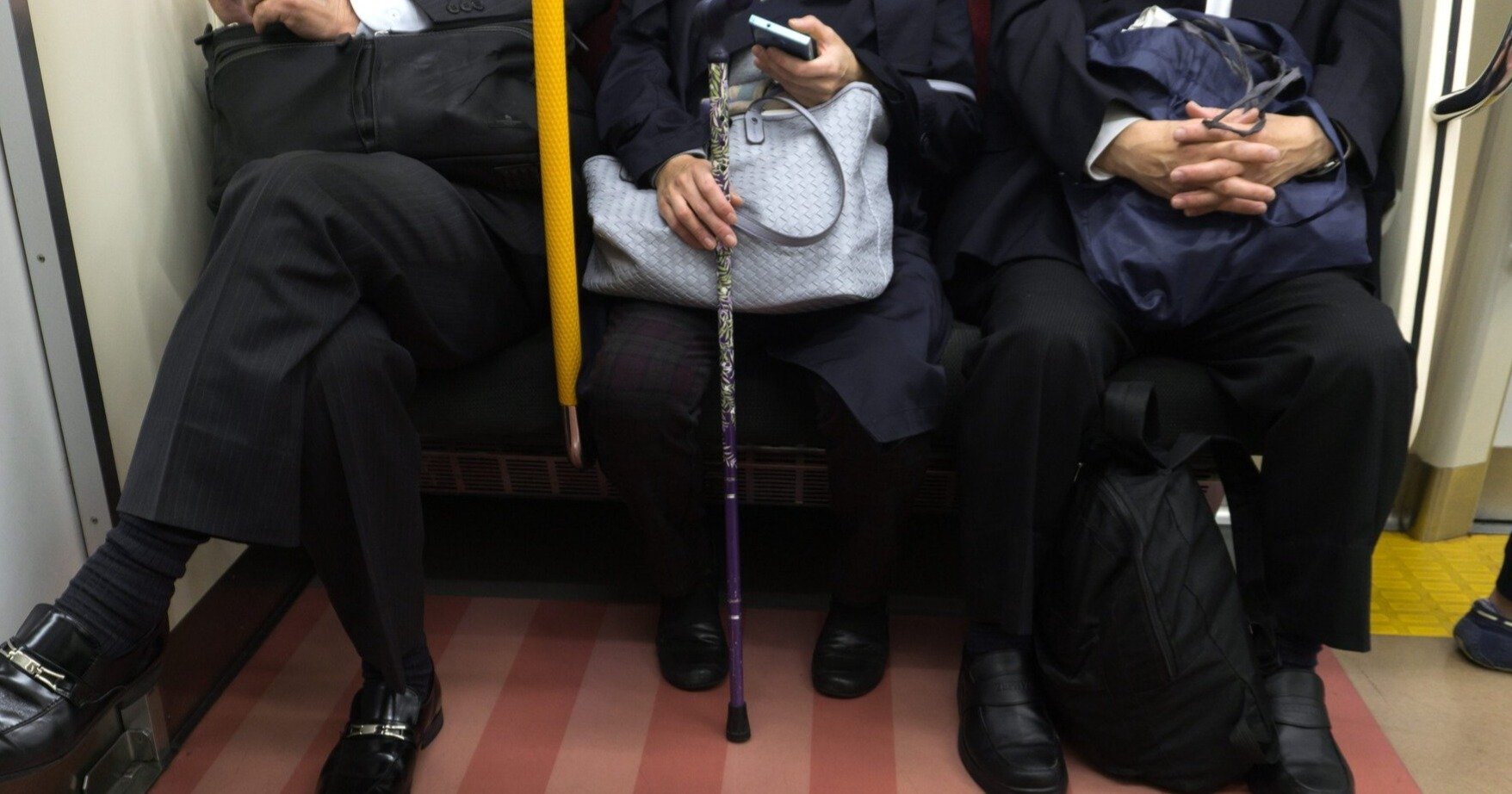 足をケガして、松葉杖を突きながら電車に乗った。ケガはかなり回復していて、立っているのがつらいわけではない。