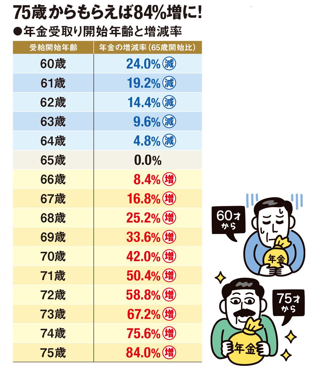 ただし、年金額が増えれば、所得税や社会保険料の負担も増えるので、手取り額がそのまま増えるわけではない。国民年金のみを繰り下げ、厚生年金は65歳から受け取るなど、柔軟な選択も可能なので、よく考えよう。