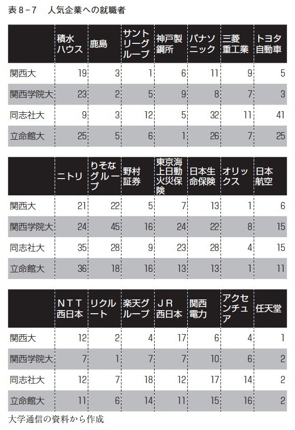 人気企業への就職者をまとめてみた(表8-7)。