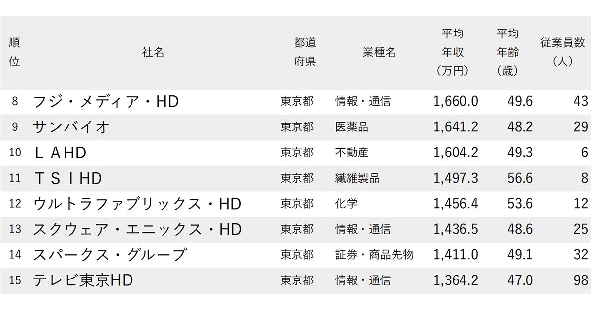この「年収ランキング」シリーズの記事では、通常、従業員数が少ない企業は除外している。今回は100人未満の企業に絞っているので、これまでの記事では紹介できていない企業が多数登場する。