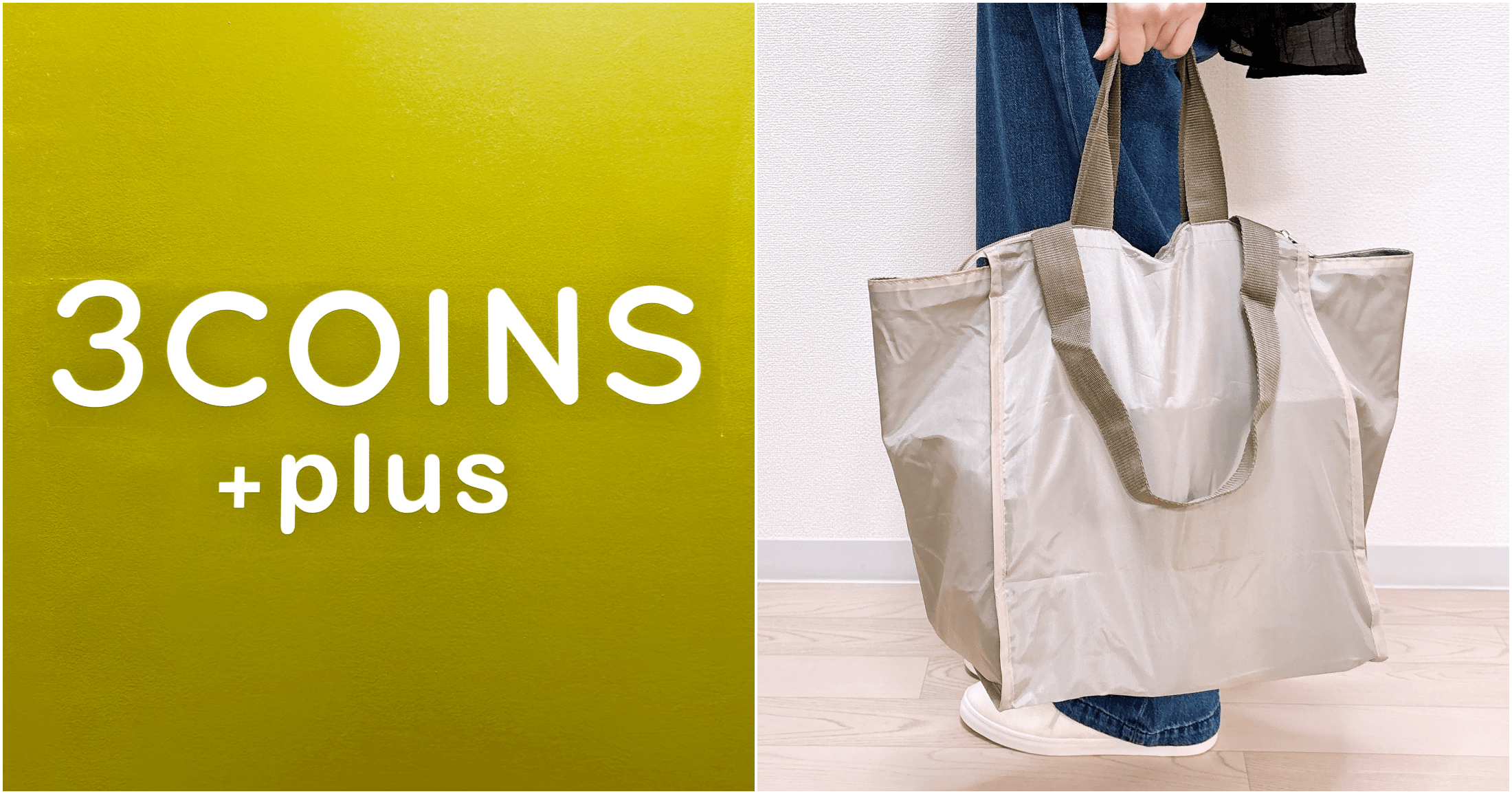 3COINSで、中身がかさばりにくい「大容量エコバッグ」を発見!