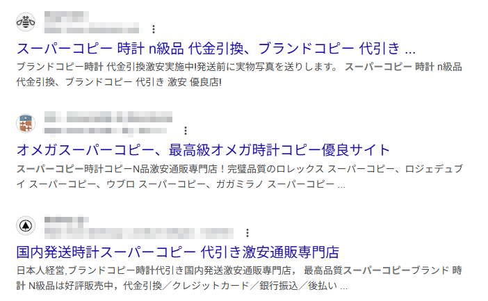 Googleで「スーパーコピー」と検索した結果(URL等が判別できないよう加工しています)拡大画像表示