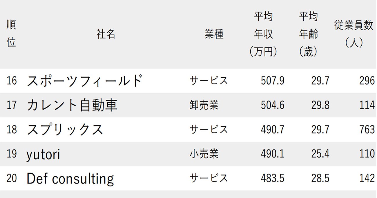 今回は、上場企業の有価証券報告書に記載された平均年収のデータを使って「年収が高い会社ランキング2025【従業員の平均年齢20代】」をお届けする。対象期間は2024年4月期~25年3月期。従業員数が20人未満の企業は除外した。