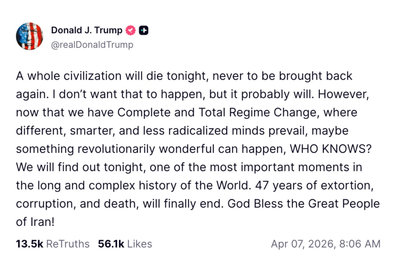 ドナルド・トランプ米大統領がイランに対し、12時間以内に合意に達しなければ、「今夜一つの文明全体が死に絶え、二度と戻ることはない」と伝えたのは、7日の午前8時06分のことだった。トランプ氏はこれまで最大限の脅しに頼ってきたが、この85語の投稿は衝撃的だった。その内容は大統領執務室だけでなく、各国の大使館や企業の重役室へと瞬く間に拡散し、同氏が設けた午後8時の期限に向けたカウントダウンが始まった。また、世界でも最も強力な人物が何をする覚悟があるのかを巡り、各国で臆測が広がった。トランプ氏は期限まで90分を切る中で態度を軟化させ、イランと2週間の停戦で合意したとソーシャルメディアに投稿。ホルムズ海峡が即時に再開されることを条件に、これまでちらつかせていた攻撃を見合わせると書き込んだ。