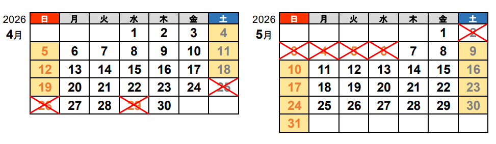 2026年度のGWも例外ではなく、4月29日(祝)から5月6日(振休)までが休日割引の適用対象外となります。さらに、直前の週末である4月25日(土)~26日(日)も対象外となるため、注意が必要です。