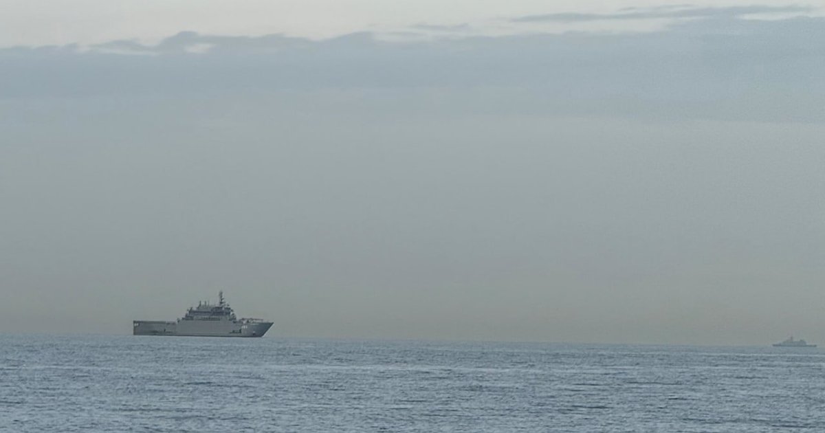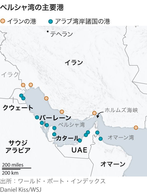 ホルムズ海峡付近で活動する軍艦 Photo: WSJ