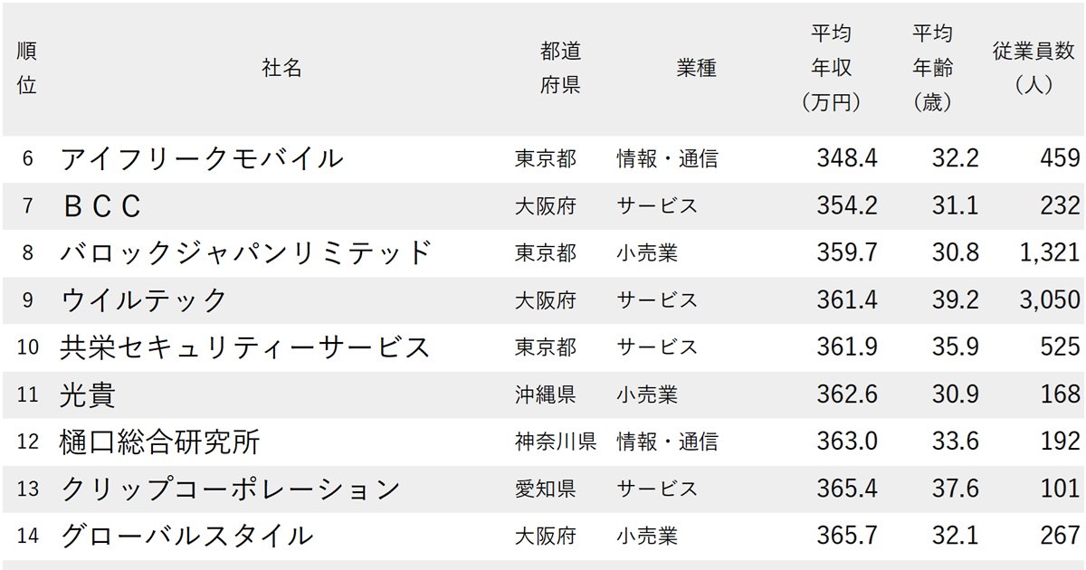 2位は障害者の就労支援事業を手がけるmanabyで、平均年収は321.8万円だった。本社は宮城県仙台市にある。宮城県のほか、東京都、神奈川県など首都圏でも事業を展開している。従業員の平均年齢は35.9歳だった(25年3月末時点)。