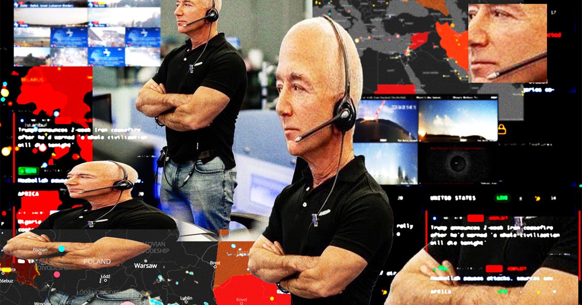 Xで拡散されたジェフ・ベゾス氏のミームは「状況注視」の概念を簡潔に表しているPHOTO ILLUSTRATION: VICTORIA ROSSELLI/WSJ, WORLD MONITOR