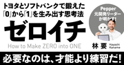 「0」から 「1」を生み出す力を日本企業は失っているのではないか? そんな指摘が盛んにされています。一方、多くのビジネスパーソンが、「ゼロイチを実現したい が、どうしたらいいのか?」と悩んでいらっしゃいます。そこで、トヨタで数々のゼロイチにかかわった後、孫正義氏から誘われて「Pepper」の開発リー ダーを務めた林要さんに、『ゼロイチ』という書籍をまとめていただきました。その一部をご紹介しながら、「会社のなかで“新しいコト”を実現するために意 識すべきエッセンス」を考えてまいります。