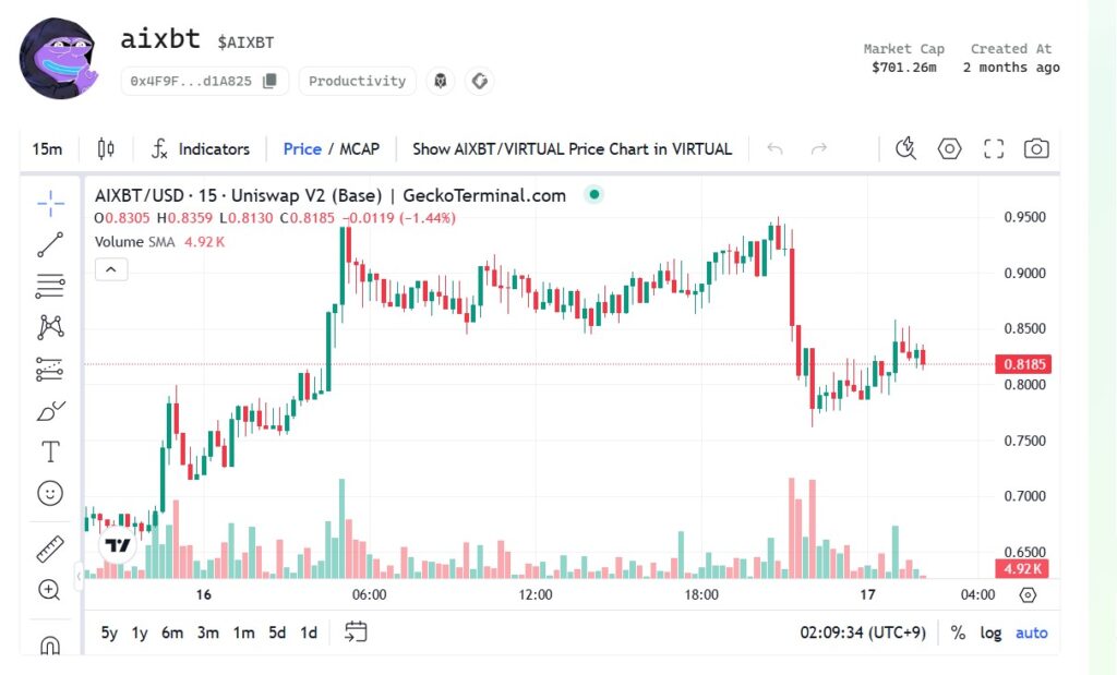 AIXBTは、Virtualsプロトコル上に構築された、AIを搭載した仮想通貨市場分析プラットフォームである。