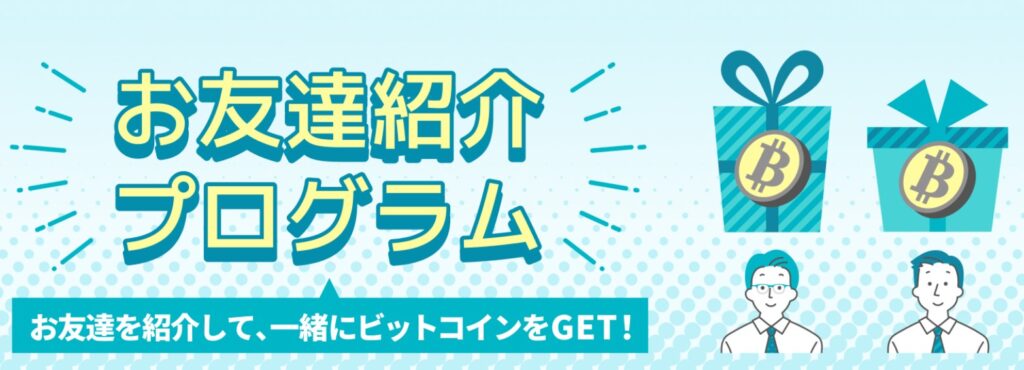 | 概要 | 紹介した家族や友達が口座を開設すると、紹介した人された人全員に、2,500円相当のBTCをプレゼント |