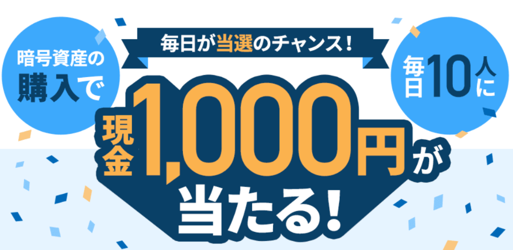 暗号資産(仮想通貨)の購入で毎日10人に1,000円が当たる