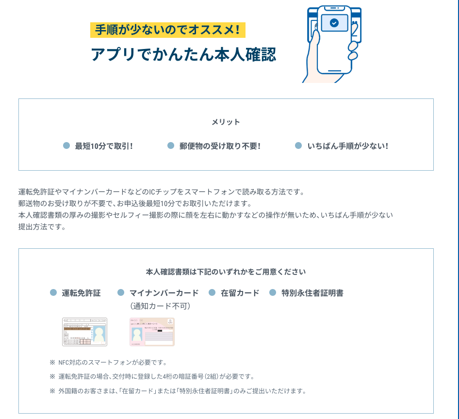 - 「かんたん本人確認」を使えば、口座開設申し込みから最短10分で取引が可能