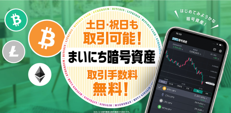 まいにち暗号資産は、主にFX(外国為替証拠金取引)を取り扱うマネーパートナーズが提供している暗号資産CFDのサービスだ。