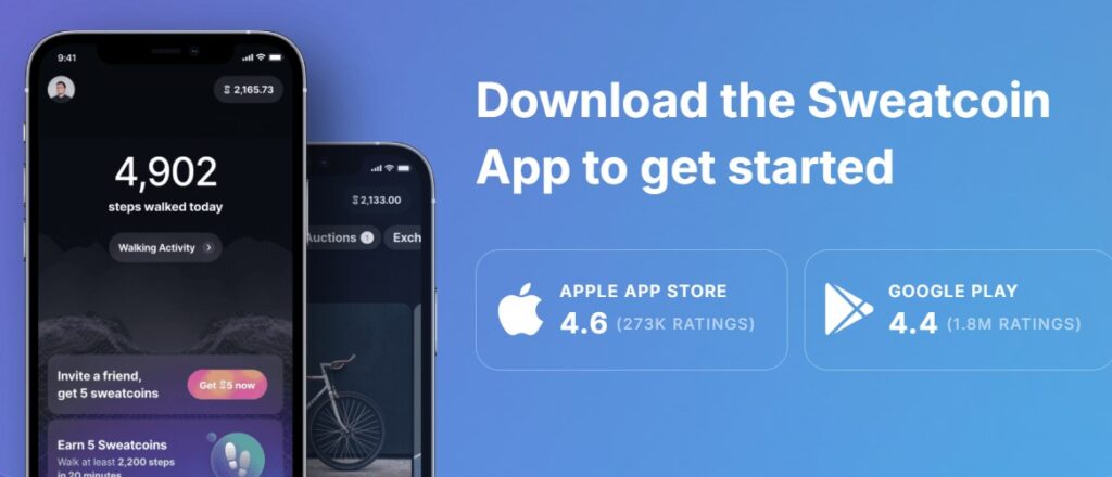 まずはSweatcoinアプリをダウンロードしよう。アプリは、Apple App StoreまたはGoogle Playストアから無料でダウンロードできる。