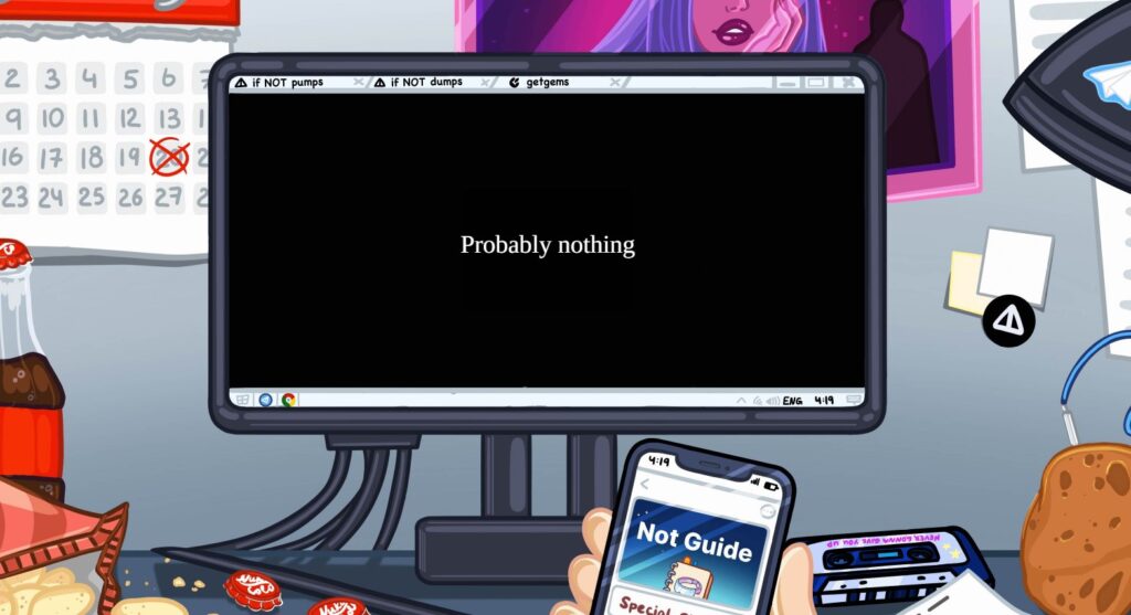 公式サイトを見ると、「probably nothing(おそらく何もない)」という言葉が大きく表示されている。サイト内でには、今後の開発計画を示すロードマップや、ホワイトペーパーもリリースされていない。運営者も公表されていない。