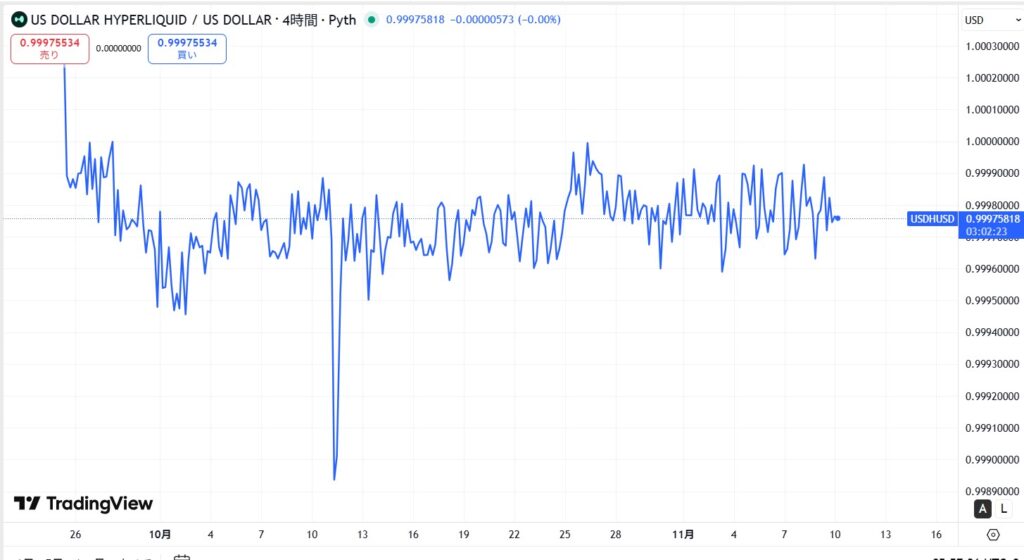 ここからは、仮想通貨USDHの価格動向を見ていこう。以下に示すのは、2025年9月25日から2025年11月10日までのUSDH/USDチャートだ。