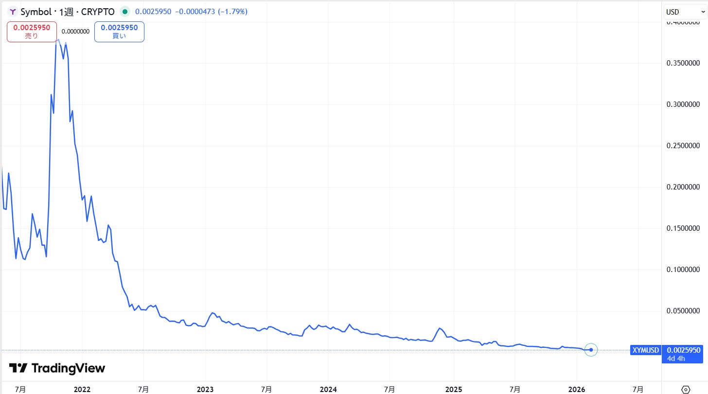 Symbolの基軸通貨XYMは、2021年末頃から長い下落基調が続いていて、最近は値動きそのものが乏しくなっている。
