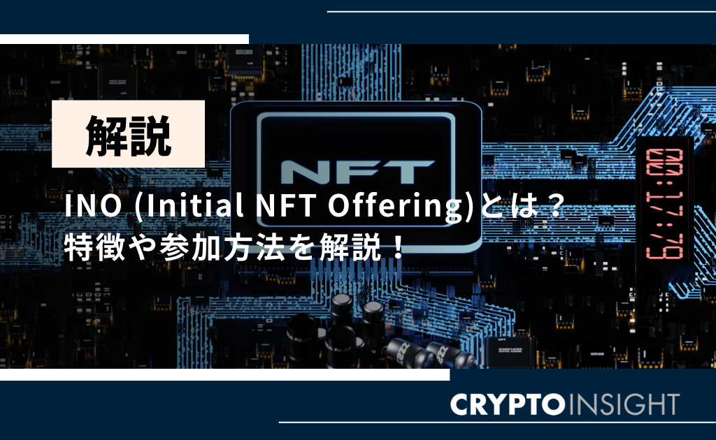Initial NFT Offering(以下「INO」と称する)は、クラウドファンディング手法の一つであり、プロジェクトの初期段階で限られた数のNon-Fungible Token(以下「NFT」と称する)を販売する手法である。
